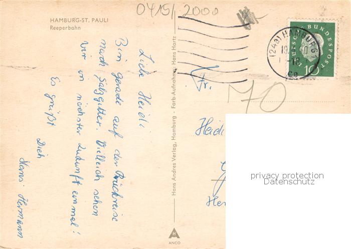 73764384 alte Postkarte St Pauli Hamburg Reeperbahn postalisch gelaufen Erhaltung siehe scans [FriedD77] KatCode: 11110002000000