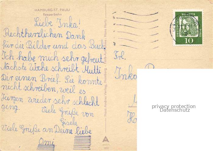 74116498 alte Postkarte St Pauli Hamburg Reeperbahn postalisch gelaufen Erhaltung siehe scans [WerneD78] KatCode: 11110002000000