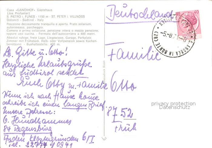 old postcard St Peter Ahrntal Casa Ganoihof Gaestehaus postalisch gelaufen Erhaltung siehe scans