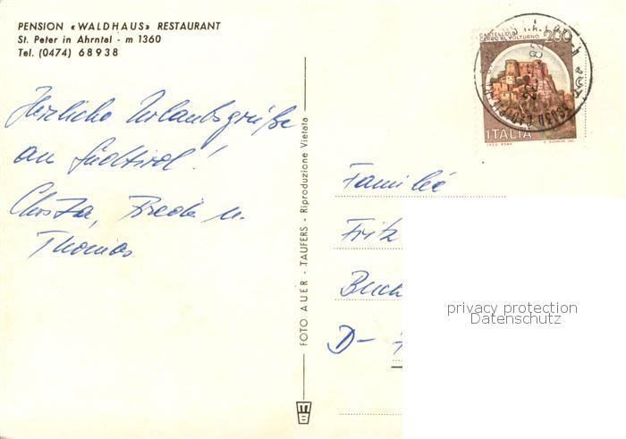 old postcard St Peter Ahrntal Pension Waldhaus Restaurant Panorama postalisch gelaufen Erhaltung siehe scans [WerneD78]