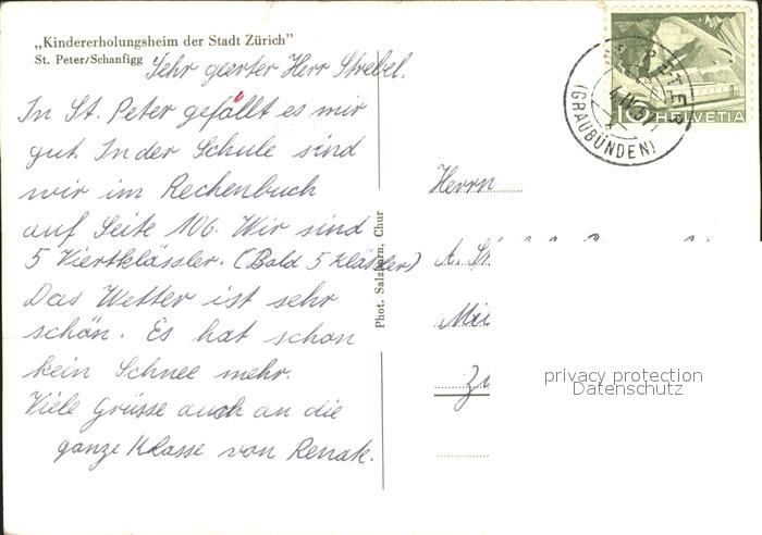 11645494 alte Postkarte St Peter GR Kindererholungsheim der Stadt Zuerich postalisch gelaufen Erhaltung siehe scans KatCode: 11470100345324