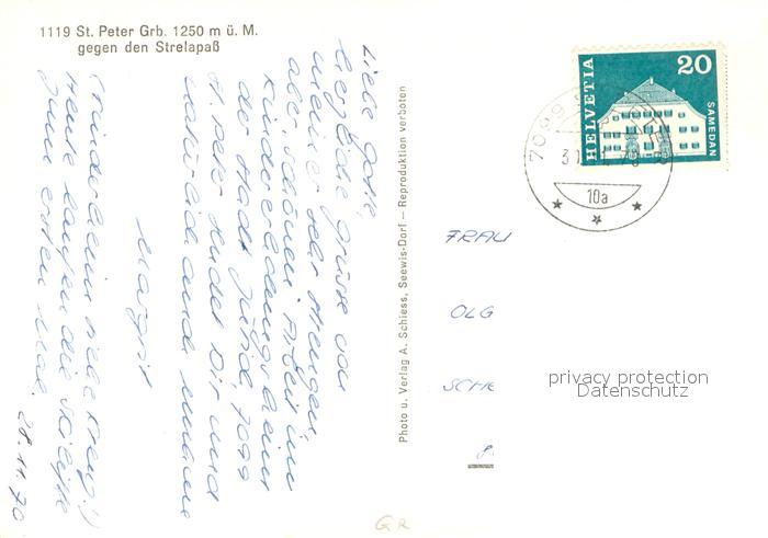 13728401 alte Postkarte St Peter GR Panorama mit Strelapass postalisch gelaufen Erhaltung siehe scans [WerneD78] KatCode: 11470100345324