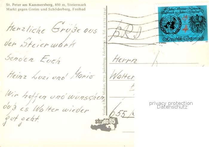 73304497 alte Postkarte St Peter Kammerberg Marktgemeinde gegen Greim und Schoederberg Freibad postalisch gelaufen Erhaltung siehe scans [FriedD77] KatCode: 11390226061411