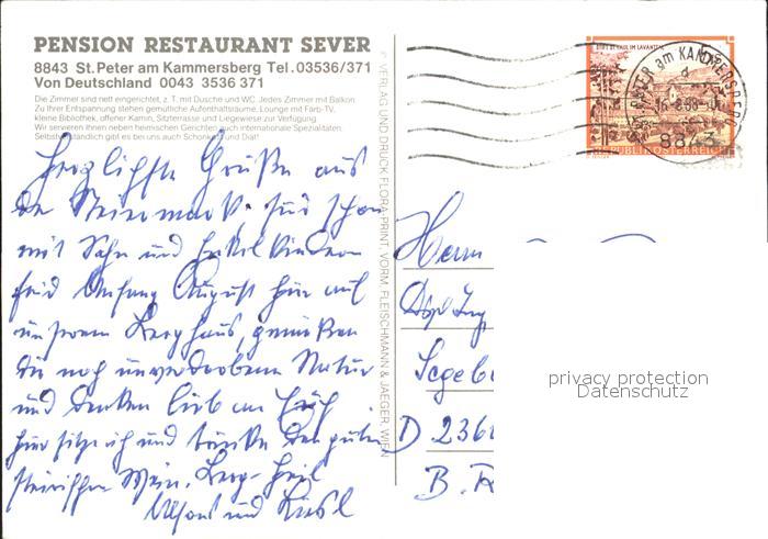 72071856 alte Postkarte St Peter Kammerberg Pension Restaurant Sever postalisch gelaufen Erhaltung siehe scans KatCode: 11390226061411