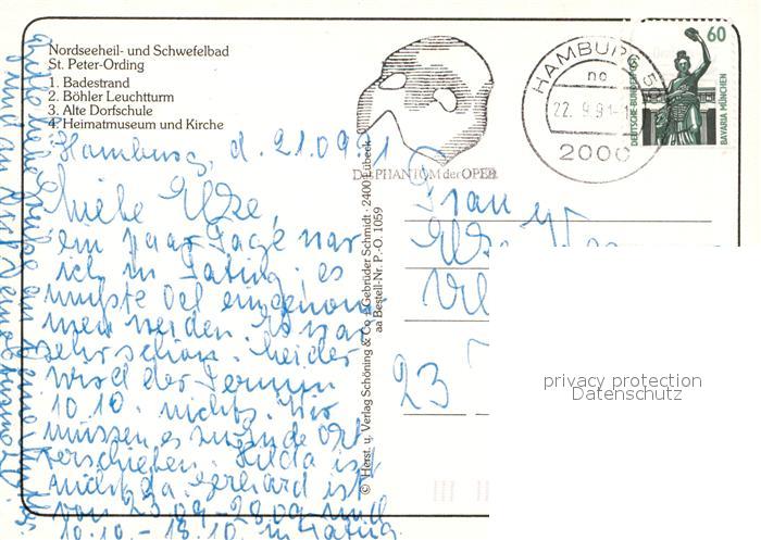 73183236 alte Postkarte St Peter-Ording Badestrand Boehler Leuchtturm Alte Dorfschule Heimatmuseum Kirche postalisch gelaufen Erhaltung siehe scans [WerneD78] KatCode: 11110001054113
