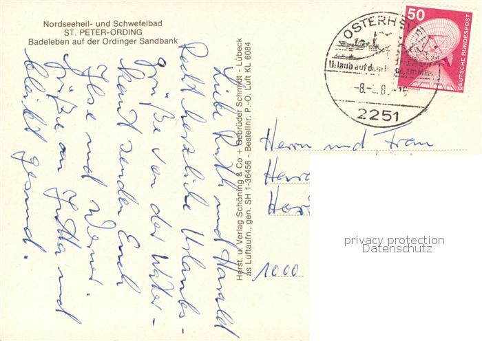 73716466 alte Postkarte St Peter-Ording Badestrand Fliegeraufnahme postalisch gelaufen Erhaltung siehe scans [WerneD78] KatCode: 11110001054113