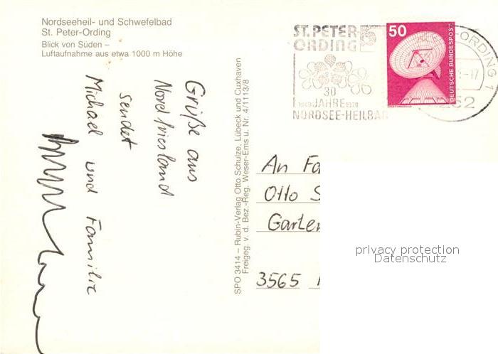 73254795 alte Postkarte St Peter-Ording Blick von Sueden Fliegeraufnahme postalisch gelaufen Erhaltung siehe scans [FriedD77] KatCode: 11110001054113