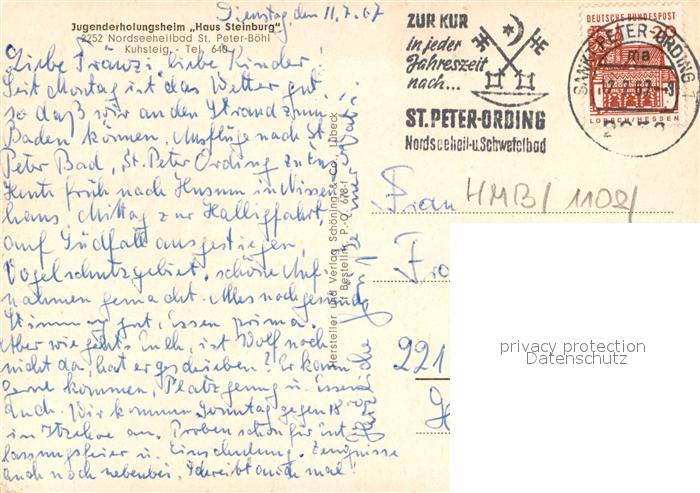 73166793 alte Postkarte St Peter-Ording Boehl Jugenderholungsheim Haus Steinburg postalisch gelaufen Erhaltung siehe scans [KathaD81] KatCode: 11110001054113