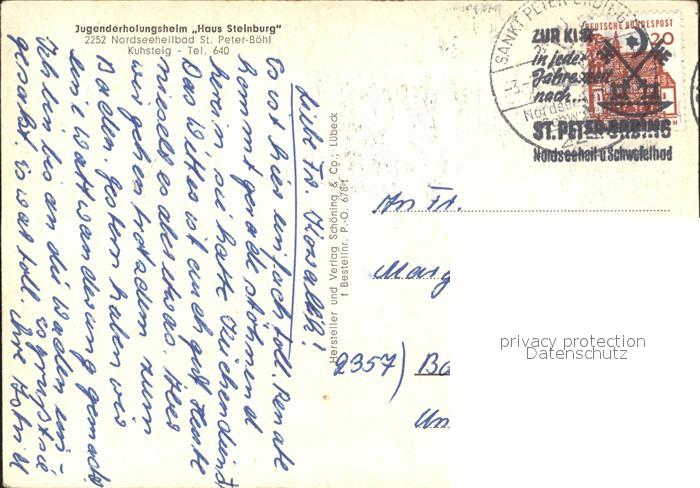72106683 alte Postkarte St Peter-Ording Boehle Jugendheim Haus Steinburg postalisch gelaufen KatCode: 11110001054113