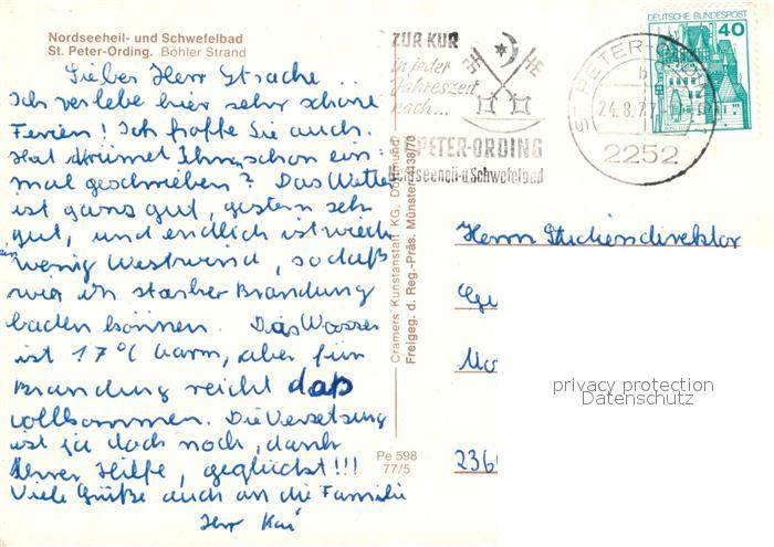 73159713 alte Postkarte St Peter-Ording Boehler Strand Nordseeheilbad Schwefelbad Fliegeraufnahme postalisch gelaufen Erhaltung siehe scans [FriedD77] KatCode: 11110001054113