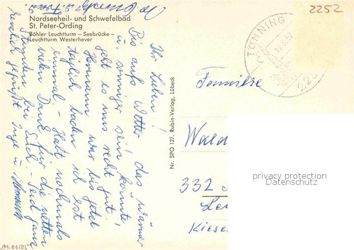 72912235 alte Postkarte St Peter-Ording Boehler und Westhever Leuchtturm Seebruecke postalisch gelaufen Erhaltung siehe scans [LiesaD40] KatCode: 11110001054113