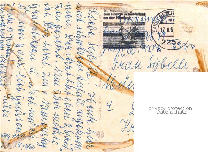 72729010 alte Postkarte St Peter-Ording Bruecke Im Bad Ording Kirche Brandung postalisch gelaufen Erhaltung siehe scans [AndreD76] KatCode: 11110001054113