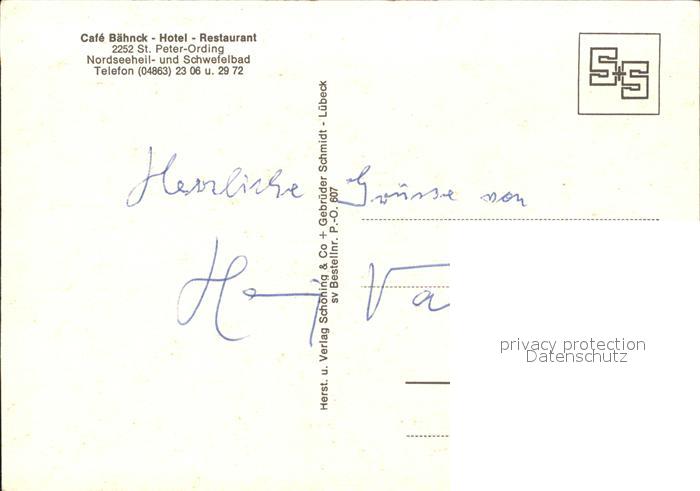 71941917 St Peter-Ording Cafe Baehnck Hotel Restaurant Fahne postalisch nicht gelaufen Erhaltung siehe scans KatCode: 11110001054113