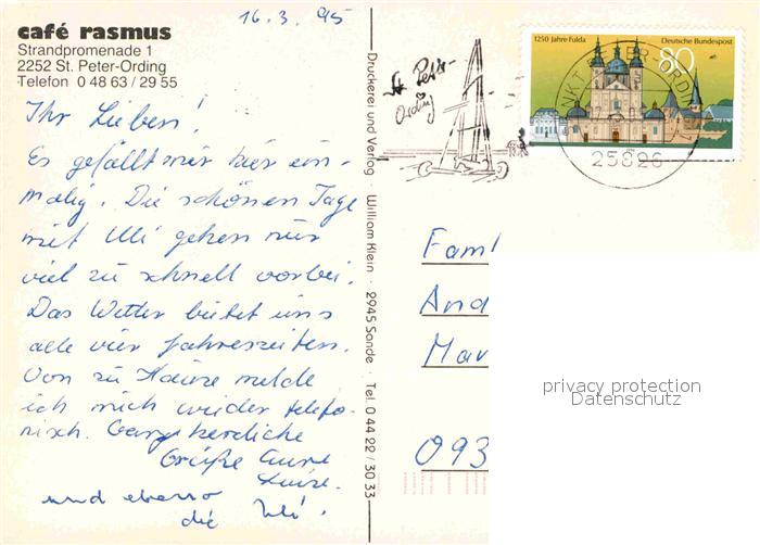 72652135 alte Postkarte St Peter-Ording Cafe Rasmus Fremdenzimmer Strand postalisch gelaufen Erhaltung siehe scans [FriedD77] KatCode: 11110001054113