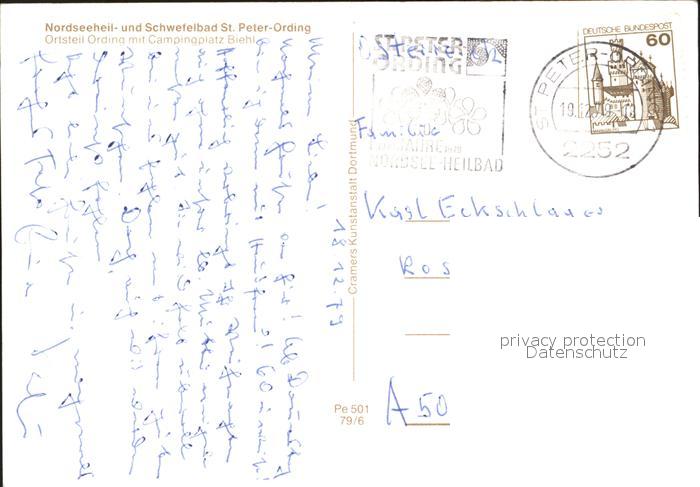 72034001 alte Postkarte St Peter-Ording Campingplatz Biehl Nordseeheilbad Schwefelbad Fliegeraufnahme postalisch gelaufen Erhaltung siehe scans KatCode: 11110001054113