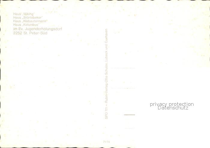 72069458 St Peter-Ording Ev Jugenderholungsdorf Haeuser Wiking Stoertebeker Klabautermann und Kolumbus postalisch nicht gelaufen KatCode: 11110001054113
