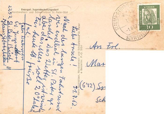 73907464 alte Postkarte St Peter-Ording Ev Jugenderholungsdorf postalisch gelaufen Erhaltung siehe scans [WerneD78] KatCode: 11110001054113