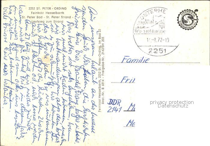 72009815 alte Postkarte St Peter-Ording Feinkost Hesselbarth Strand Laufsteg zum Strand postalisch gelaufen Erhaltung siehe scans KatCode: 11110001054113