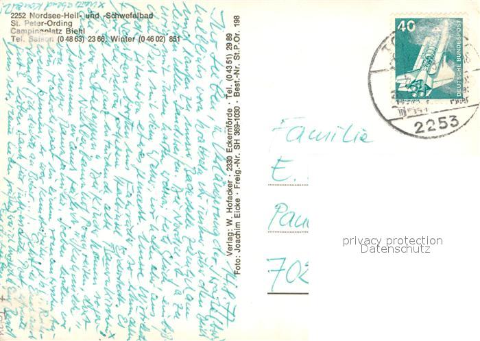 73679218 alte Postkarte St Peter-Ording Fliegeraufnahme Camping Biehl postalisch gelaufen Erhaltung siehe scans [LiesaD40] KatCode: 11110001054113