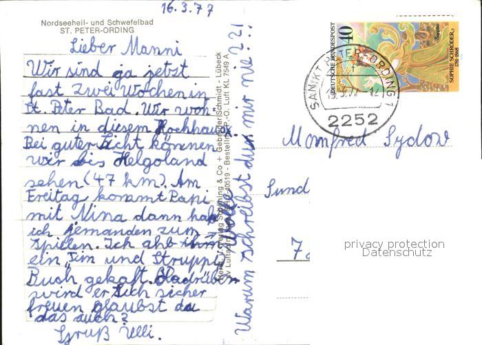 72597464 alte Postkarte St Peter-Ording Fliegeraufnahme Strandpartie mit Hochhaeusern postalisch gelaufen Erhaltung siehe scans [LiesaD40] KatCode: 11110001054113