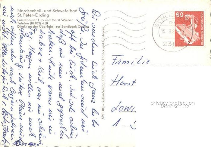 72156845 alte Postkarte St Peter-Ording Gaestehaus Wieben Nordseebad Schwefelbad postalisch gelaufen Erhaltung siehe scans KatCode: 11110001054113