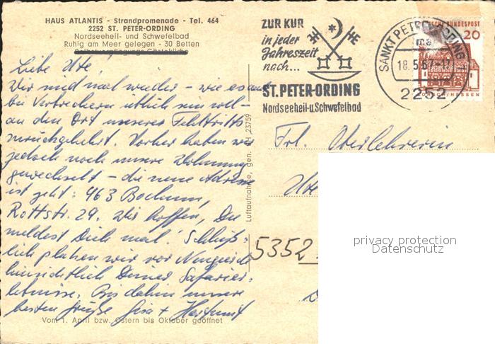72076796 alte Postkarte St Peter-Ording Haus Atlantis Strandpromenade postalisch gelaufen Erhaltung siehe scans KatCode: 11110001054113