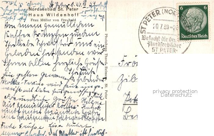 32983539 alte Postkarte St Peter-Ording Haus Wildenhoff postalisch gelaufen Erhaltung siehe scans [NatalD47] KatCode: 11110001054113