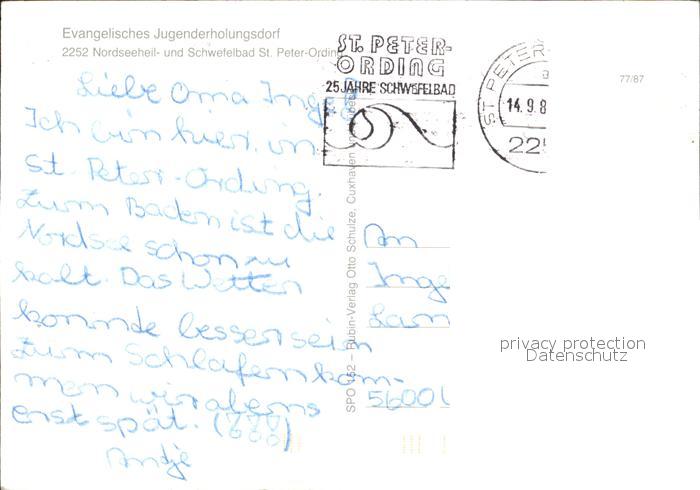 72002997 alte Postkarte St Peter-Ording Jugenderholungsdorf Minigolf Stoertebeker Brandung Dorfplatz Tennisanlage Pamir postalisch gelaufen Erhaltung siehe scans KatCode: 11110001054113