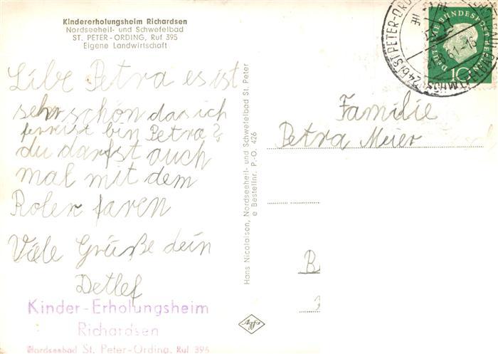 73878195 alte Postkarte St Peter-Ording Kindererholungsheim Richardsen Gastraum Viehweide Kuehe postalisch gelaufen Erhaltung siehe scans [FriedD77] KatCode: 11110001054113