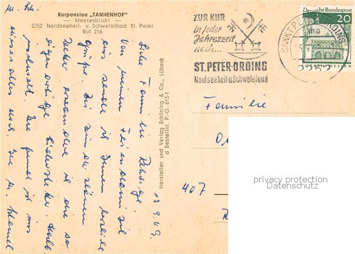 73845494 St-Peter-Ording Kurpension Tannenhof postalisch gelaufen Erhaltung siehe scans [WerneD78] alte Postkarte Wern Katcode 11110001054113