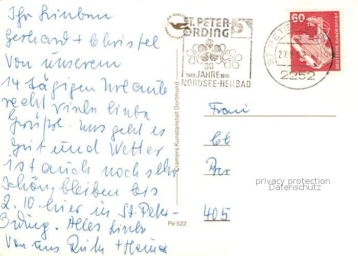 73296291 alte Postkarte St Peter-Ording Leuchtturm Seebruecke Die Seekiste Boehler Sandbank Strand Friesenhaus postalisch gelaufen Erhaltung siehe scans [FriedD77] KatCode: 11110001054113