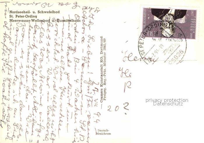 72840237 alte Postkarte St Peter-Ording Meerwasser Wellenbad mit Kurmittelhaus Fliegeraufnahme postalisch gelaufen Erhaltung siehe scans [WerneD78] KatCode: 11110001054113