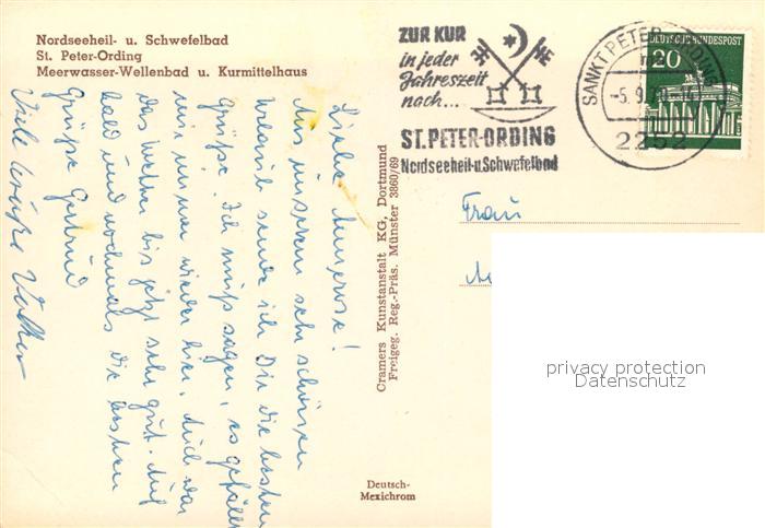 73540276 alte Postkarte St Peter-Ording Meerwasser Wellenbad und Kurmittelhaus Fliegeraufnahme postalisch gelaufen Erhaltung siehe scans [WerneD78] KatCode: 11110001054113