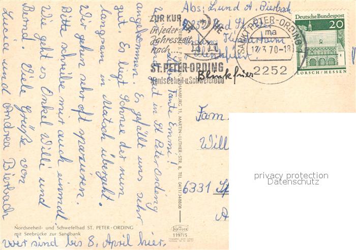 73150892 alte Postkarte St Peter-Ording mit Seebruecke zur Sandbank Fliegeraufnahme postalisch gelaufen Erhaltung siehe scans [FriedD77] KatCode: 11110001054113