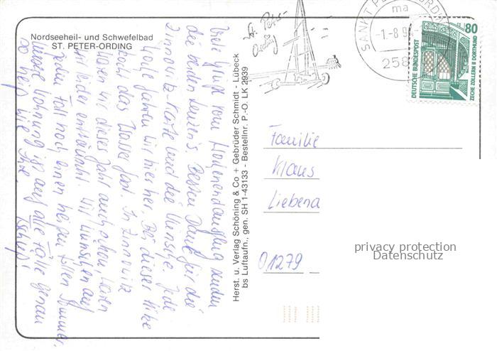 74027123 alte Postkarte St Peter-Ording Nordseeheil- und Schwefelbad Kuestenpanorama postalisch gelaufen Fliegeraufnahme Erhaltung siehe scans [FriedD77] KatCode: 11110001054113