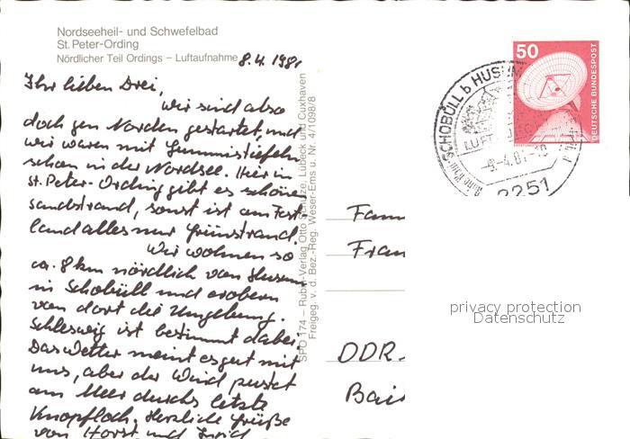 72156837 alte Postkarte St Peter-Ording Nordseeheilbad Schwefelbad Fliegeraufnahme postalisch gelaufen Erhaltung siehe scans KatCode: 11110001054113