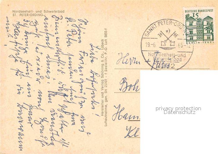 72785105 alte Postkarte St Peter-Ording Nordseeheilbad Schwefelbad Fliegeraufnahme postalisch gelaufen Erhaltung siehe scans [FriedD77] KatCode: 11110001054113