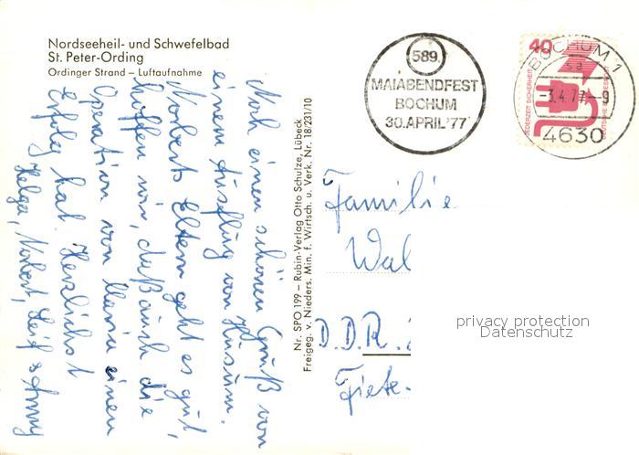 73712014 alte Postkarte St Peter-Ording Ordinger Strand Fliegeraufnahme postalisch gelaufen Erhaltung siehe scans [WerneD78] KatCode: 11110001054113