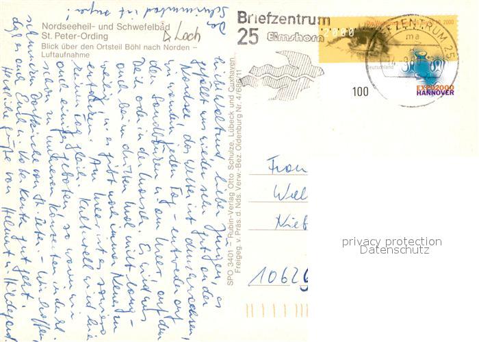 73005310 alte Postkarte St Peter-Ording OT Boehl Fliegeraufnahme postalisch gelaufen Erhaltung siehe scans [WerneD78] KatCode: 11110001054113