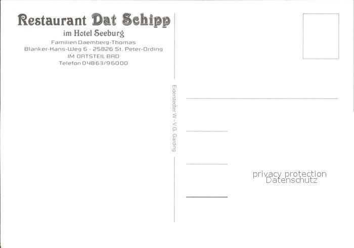 72282261 St Peter-Ording Restaurant Dat Schipp Hotel Seeburg postalisch nicht gelaufen Erhaltung siehe scans KatCode: 11110001054113