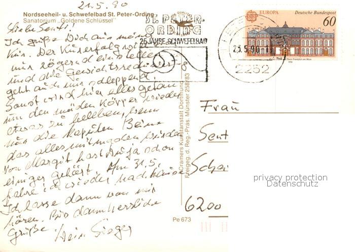 73540068 alte Postkarte St Peter-Ording Sanatorium Goldene Schluessel Fliegeraufnahme postalisch gelaufen Erhaltung siehe scans [WerneD78] KatCode: 11110001054113