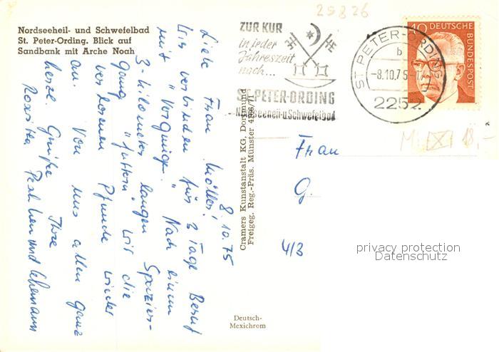 73322920 alte Postkarte St Peter-Ording Sandbank mit Arche Noah Fliegeraufnahme postalisch gelaufen Erhaltung siehe scans [WerneD78] KatCode: 11110001054113