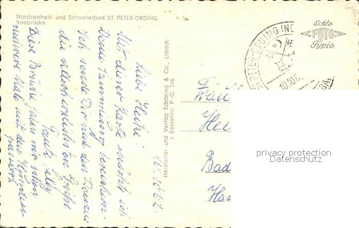 72175640 alte Postkarte St Peter-Ording Seebruecke postalisch gelaufen Erhaltung siehe scans KatCode: 11110001054113