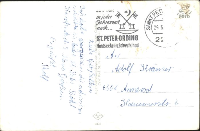 30727599 alte Postkarte St Peter-Ording [Stempelabschlag] Fliegeraufnahme postalisch gelaufen KatCode: 11110001054113