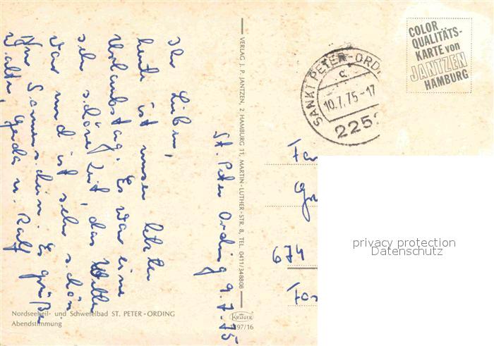 72843548 alte Postkarte St Peter-Ording Strand bei Sonnenuntergang postalisch gelaufen Erhaltung siehe scans [LiesaD40] KatCode: 11110001054113