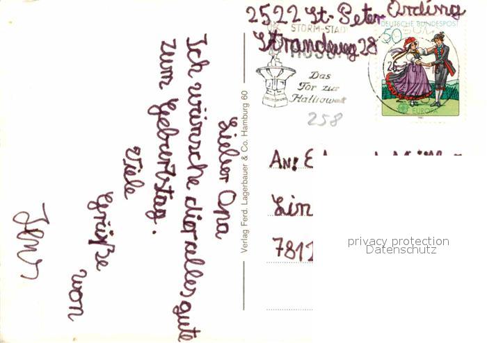 72615547 alte Postkarte St Peter-Ording Strand Strandsegler Badeallee Im Bad Ording Bruecke Promenade Arche Noah postalisch gelaufen Erhaltung siehe scans [WerneD78] KatCode: 11110001054113
