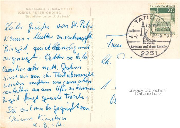 73768563 alte Postkarte St-Peter-Ording Strandleben bei der Arche Noah Fliegeraufnahme postalisch gelaufen Erhaltung siehe scans [WerneD78] KatCode: 11110001054113