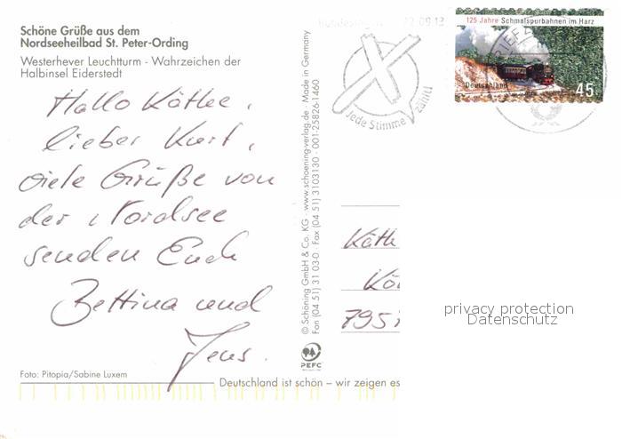 72859105 alte Postkarte St Peter-Ording Westerhever Leuchtturm postalisch gelaufen Erhaltung siehe scans [AndreD76] KatCode: 11110001054113