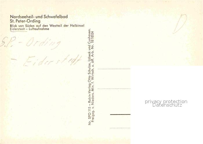 72902582 St Peter-Ording Westteil Halbinsel Eiderstedt Nordseeheilbad Schwefelbad Fliegeraufnahme postalisch nicht gelaufen Erhaltung siehe scans [FriedD77] KatCode: 11110001054113