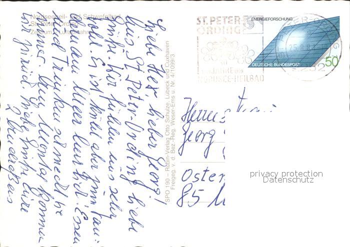 72279907 alte Postkarte St Peter-Ording Zentrum Nordseeheilbad Schwefelbad Fliegeraufnahme postalisch gelaufen Erhaltung siehe scans KatCode: 11110001054113